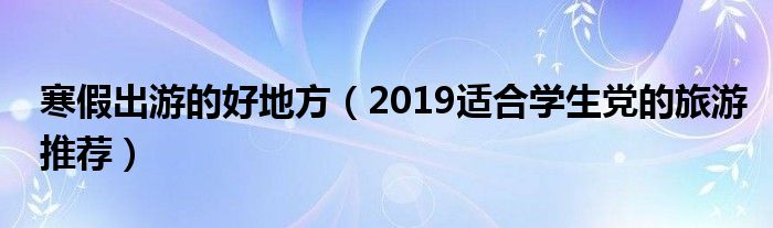 大家好,综合小编来为大家讲解下。寒假出游的好地方,2019适合学生党的旅游推荐这个很多人还不知道,现在让我们一起来看看吧!