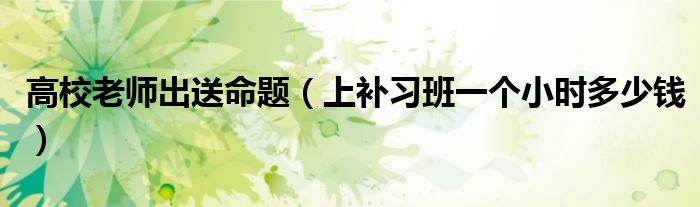 大家好,综合小编来为大家讲解下。高校老师出送命题,上补习班一个小时多少钱这个很多人还不知道,现在让我们一起来看看吧!