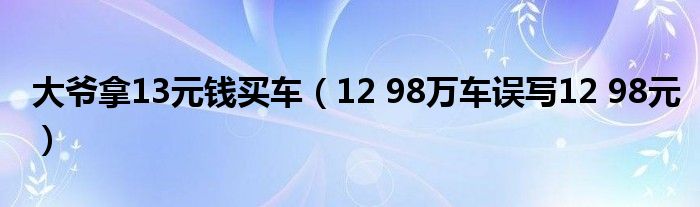 大家好,综合小编来为大家讲解下。大爷拿13元钱买车,12 98万车误写12 98元这个很多人还不知道,现在让我们一起来看看吧!