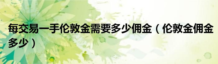 大家好,综合小编来为大家讲解下。每交易一手伦敦金需要多少佣金,伦敦金佣金多少这个很多人还不知道,现在让我们一起来看看吧!