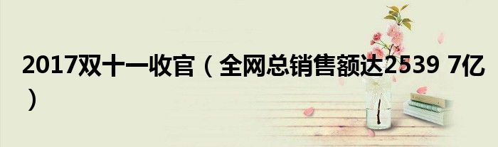 导读 大家好,综合小编来为大家讲解下。2017双十一收官,全网总销售额达2539 7亿这个很多人还不知道,现在让我们一起来看看吧!2017年的双十一最