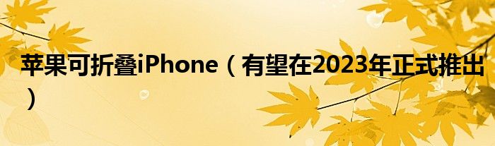 导读 大家好,综合小编来为大家讲解下。苹果可折叠iPhone,有望在2023年正式推出这个很多人还不知道,现在让我们一起来看看吧!1、折叠手机在近段