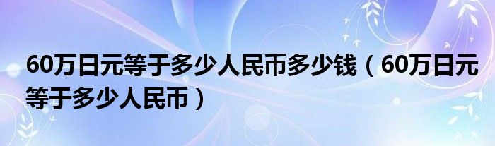 导读 大家好,综合小编来为大家讲解下。60万日元等于多少人民币多少钱,60万日元等于多少人民币这个很多人还不知道,现在让我们一起来看看吧!1、