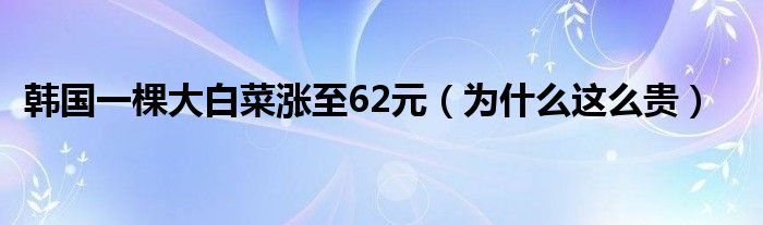 大家好,综合小编来为大家讲解下。韩国一棵大白菜涨至62元,为什么这么贵这个很多人还不知道,现在让我们一起来看看吧!