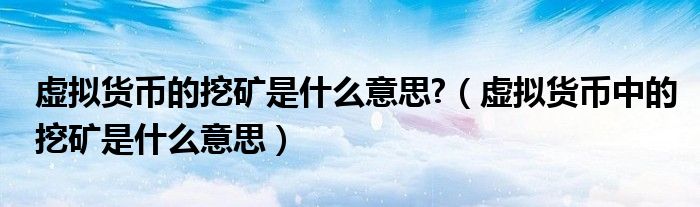大家好,综合小编来为大家讲解下。虚拟货币的挖矿是什么意思?,虚拟货币中的挖矿是什么意思这个很多人还不知道,现在让我们一起来看看吧!