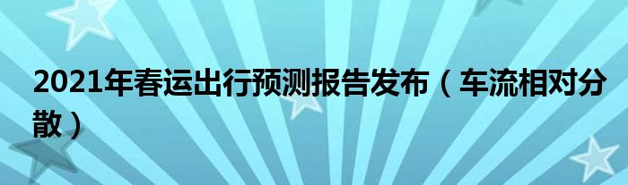 大家好,综合小编来为大家讲解下。2021年春运出行预测报告发布,车流相对分散这个很多人还不知道,现在让我们一起来看看吧!