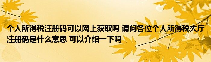 导读 大家好,小呗来为大家解答以上的问题个人所得税注册码可以网上获取吗,请问各位个人所得税大厅注册码是什么意思,可以介绍一下吗这个很多人