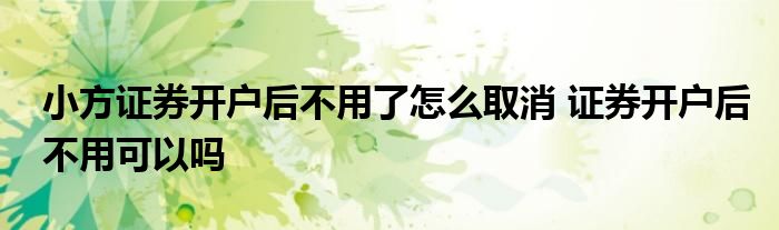 导读 大家好,小元来为大家解答问题。小方证券开户后不用了怎么取消,证券开户后不用可以吗,这个很多人还不知道,现在让我们一起来了解下吧!
