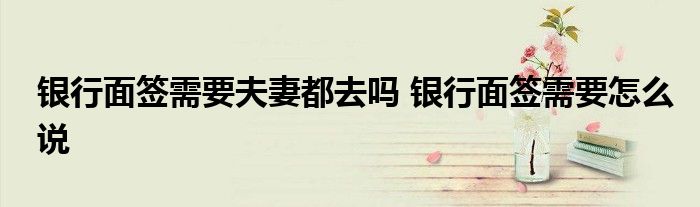 导读 大家好,小呗来为大家解答以上的问题银行面签需要夫妻都去吗,银行面签需要怎么说这个很多人还不知道,现在让我们一起来了解下吧!