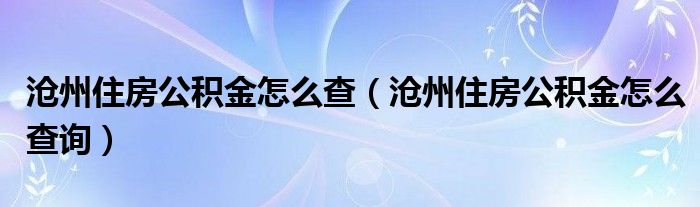 大家好,综合小编来为大家讲解下。沧州住房公积金怎么查,沧州住房公积金怎么查询这个很多人还不知道,现在让我们一起来看看吧!