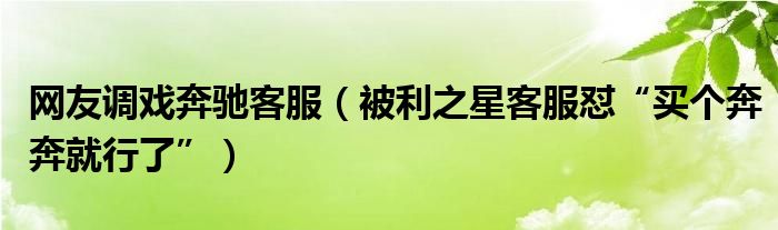 大家好,综合小编来为大家讲解下。网友调戏奔驰客服,被利之星客服怼“买个奔奔就行了”这个很多人还不知道,现在让我们一起来看看吧!