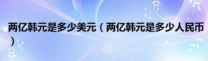 大家好,综合小编来为大家讲解下。两亿韩元是多少美元,两亿韩元是多少人民币这个很多人还不知道,现在让我们一起来看看吧!