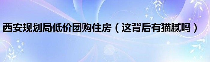 大家好,综合小编来为大家讲解下。西安规划局低价团购住房,这背后有猫腻吗这个很多人还不知道,现在让我们一起来看看吧!