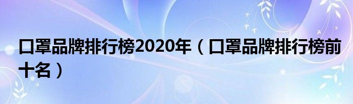 导读 大家好,综合小编来为大家讲解下。口罩品牌排行榜2020年,口罩品牌排行榜前十名这个很多人还不知道,现在让我们一起来看看吧!1、我查了一下