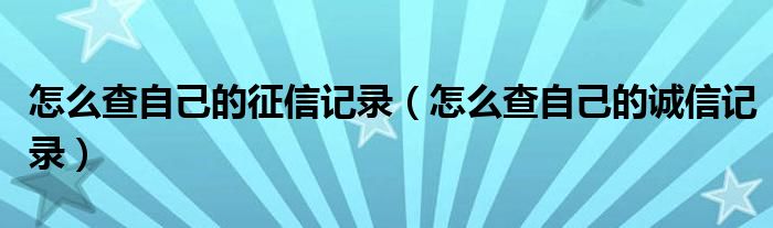 大家好,综合小编来为大家讲解下。怎么查自己的征信记录,怎么查自己的诚信记录这个很多人还不知道,现在让我们一起来看看吧!