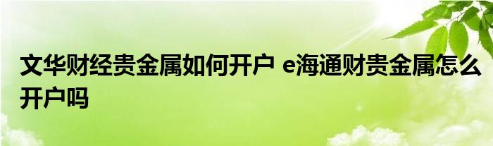 导读 大家好,小元来为大家解答问题。文华财经贵金属如何开户,e海通财贵金属怎么开户吗,这个很多人还不知道,现在让我们一起来了解下吧!