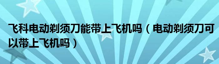 导读 大家好,综合小编来为大家讲解下。飞科电动剃须刀能带上飞机吗,电动剃须刀可以带上飞机吗这个很多人还不知道,现在让我们一起来看看吧!1、