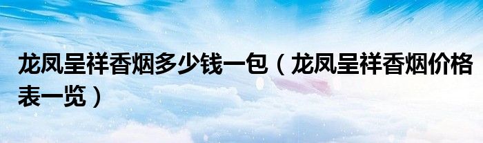 大家好,综合小编来为大家讲解下。龙凤呈祥香烟多少钱一包,龙凤呈祥香烟价格表一览这个很多人还不知道,现在让我们一起来看看吧!