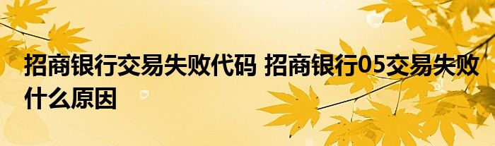导读 大家好,小元来为大家解答问题。招商银行交易失败代码,招商银行05交易失败什么原因,这个很多人还不知道,现在让我们一起来了解下吧!