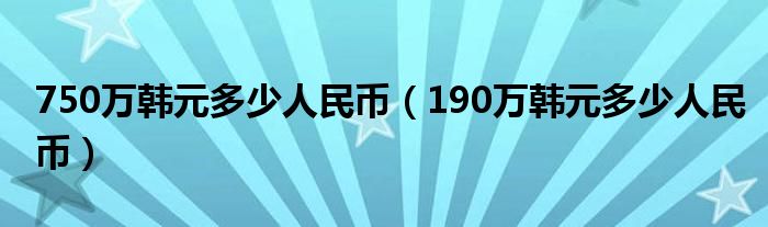 大家好,综合小编来为大家讲解下。750万韩元多少人民币,190万韩元多少人民币这个很多人还不知道,现在让我们一起来看看吧!