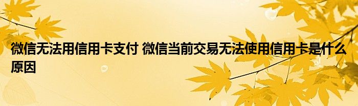 导读 大家好,小元来为大家解答问题。微信无法用信用卡支付,微信当前交易无法使用信用卡是什么原因,这个很多人还不知道,现在让我们一起来了解