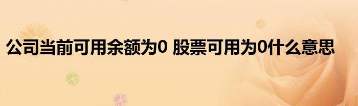 导读 大家好,小元来为大家解答问题。公司当前可用余额为0,股票可用为0什么意思这个很多人还不知道,现在让我们一起来了解下吧!
