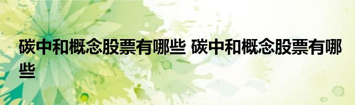 导读 大家好,小元来为大家解答问题。碳中和概念股票有哪些,碳中和概念股票有哪些这个很多人还不知道,现在让我们一起来了解下吧!