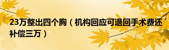 大家好,综合小编来为大家讲解下。23万整出四个胸,机构回应可退回手术费还补偿三万这个很多人还不知道,现在让我们一起来看看吧!