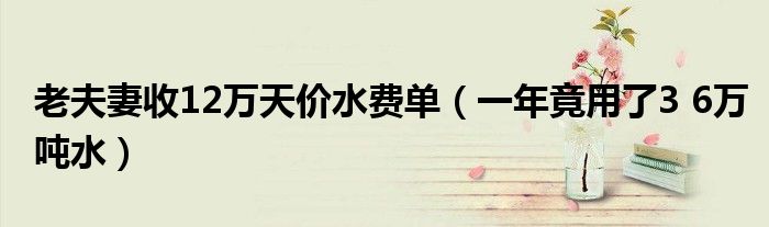 大家好,综合小编来为大家讲解下。老夫妻收12万天价水费单,一年竟用了3 6万吨水这个很多人还不知道,现在让我们一起来看看吧!