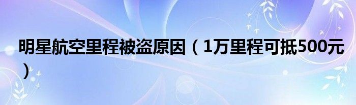 大家好,综合小编来为大家讲解下。明星航空里程被盗原因,1万里程可抵500元这个很多人还不知道,现在让我们一起来看看吧!