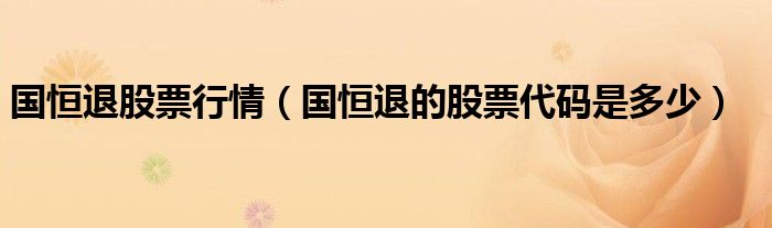 大家好,综合小编来为大家讲解下。国恒退股票行情,国恒退的股票代码是多少这个很多人还不知道,现在让我们一起来看看吧!