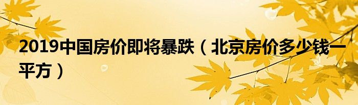 大家好,综合小编来为大家讲解下。2019中国房价即将暴跌,北京房价多少钱一平方这个很多人还不知道,现在让我们一起来看看吧!