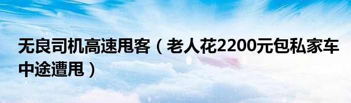 大家好,综合小编来为大家讲解下。无良司机高速甩客,老人花2200元包私家车中途遭甩这个很多人还不知道,现在让我们一起来看看吧!