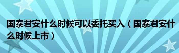 大家好,综合小编来为大家讲解下。国泰君安什么时候可以委托买入,国泰君安什么时候上市这个很多人还不知道,现在让我们一起来看看吧!