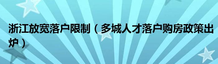 大家好,综合小编来为大家讲解下。浙江放宽落户限制,多城人才落户购房政策出炉这个很多人还不知道,现在让我们一起来看看吧!