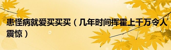 大家好,综合小编来为大家讲解下。患怪病就爱买买买,几年时间挥霍上千万令人震惊这个很多人还不知道,现在让我们一起来看看吧!