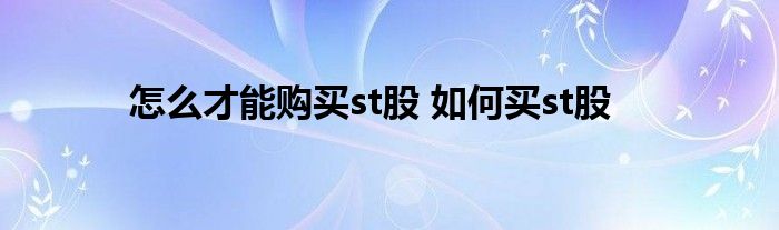 导读 大家好,小元来为大家解答问题。怎么才能购买st股,如何买st股这个很多人还不知道,现在让我们一起来了解下吧!