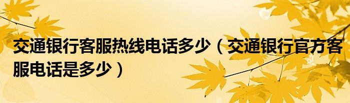 导读 大家好,综合小编来为大家讲解下。交通银行客服热线电话多少,交通银行官方客服电话是多少这个很多人还不知道,现在让我们一起来看看吧!1、