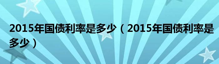 大家好,综合小编来为大家讲解下。2015年国债利率是多少,2015年国债利率是多少这个很多人还不知道,现在让我们一起来看看吧!