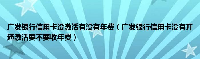 导读 大家好,综合小编来为大家讲解下。广发银行信用卡没激活有没有年费,广发银行信用卡没有开通激活要不要收年费这个很多人还不知道,现在让我们