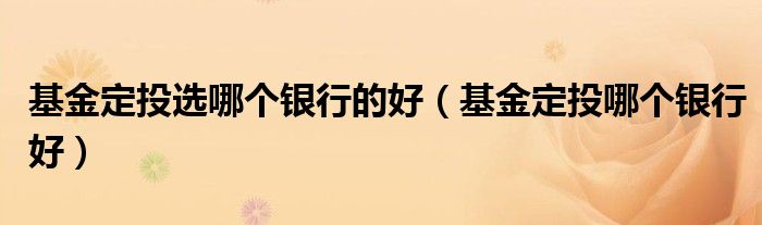 导读 大家好,综合小编来为大家讲解下。基金定投选哪个银行的好,基金定投哪个银行好这个很多人还不知道,现在让我们一起来看看吧!1、对于这部分