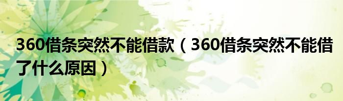 导读 大家好,综合小编来为大家讲解下。360借条突然不能借款,360借条突然不能借了什么原因这个很多人还不知道,现在让我们一起来看看吧!1、360借