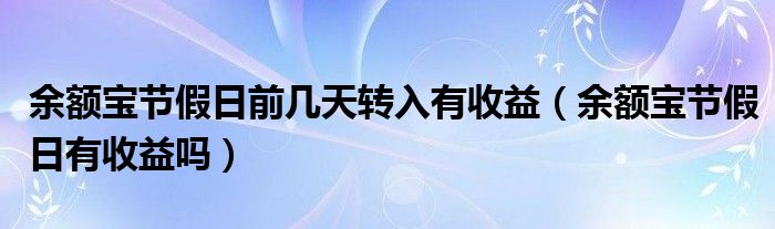 导读 大家好,综合小编来为大家讲解下。余额宝节假日前几天转入有收益,余额宝节假日有收益吗这个很多人还不知道,现在让我们一起来看看吧!1、节