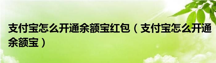 大家好,综合小编来为大家讲解下。支付宝怎么开通余额宝红包,支付宝怎么开通余额宝这个很多人还不知道,现在让我们一起来看看吧!