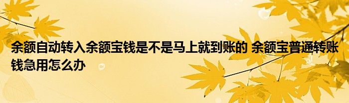 大家好,小呗来为大家解答以上的问题余额自动转入余额宝钱是不是马上就到账的,余额宝普通转账钱急用怎么办这个很多人还不知道,现在让我们一起来了解下吧!