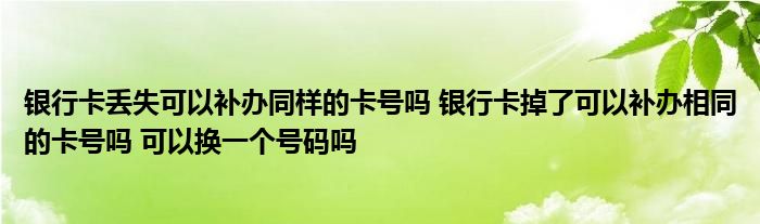 导读 大家好,小呗来为大家解答以上的问题银行卡丢失可以补办同样的卡号吗,银行卡掉了可以补办相同的卡号吗,可以换一个号码吗这个很多人还不知