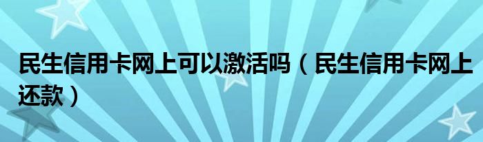 大家好,小卡来为大家解答以上问题。民生信用卡网上可以激活吗,民生信用卡网上还款很多人还不知道,现在让我们一起来看看吧!