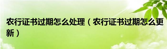 大家好,小卡来为大家解答以上问题。农行证书过期怎么处理,农行证书过期怎么更新很多人还不知道,现在让我们一起来看看吧!