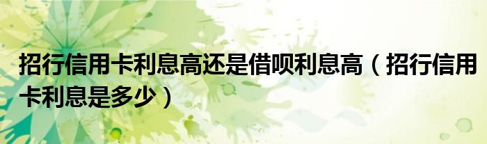 导读 大家好,综合小编来为大家讲解下。招行信用卡利息高还是借呗利息高,招行信用卡利息是多少这个很多人还不知道,现在让我们一起来看看吧!1、