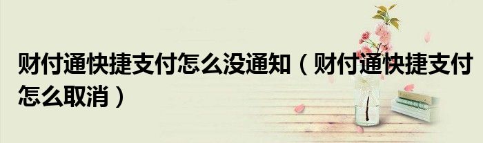 导读 大家好,综合小编来为大家讲解下。财付通快捷支付怎么没通知,财付通快捷支付怎么取消这个很多人还不知道,现在让我们一起来看看吧!1、你好